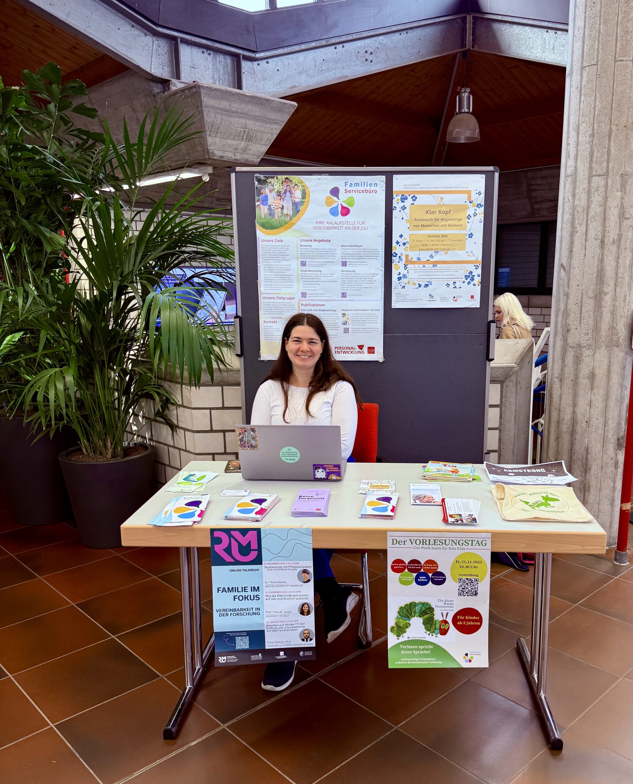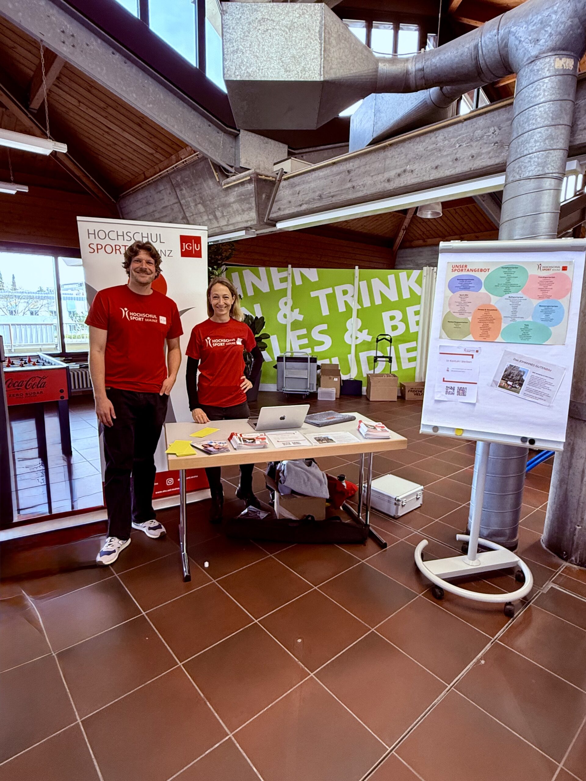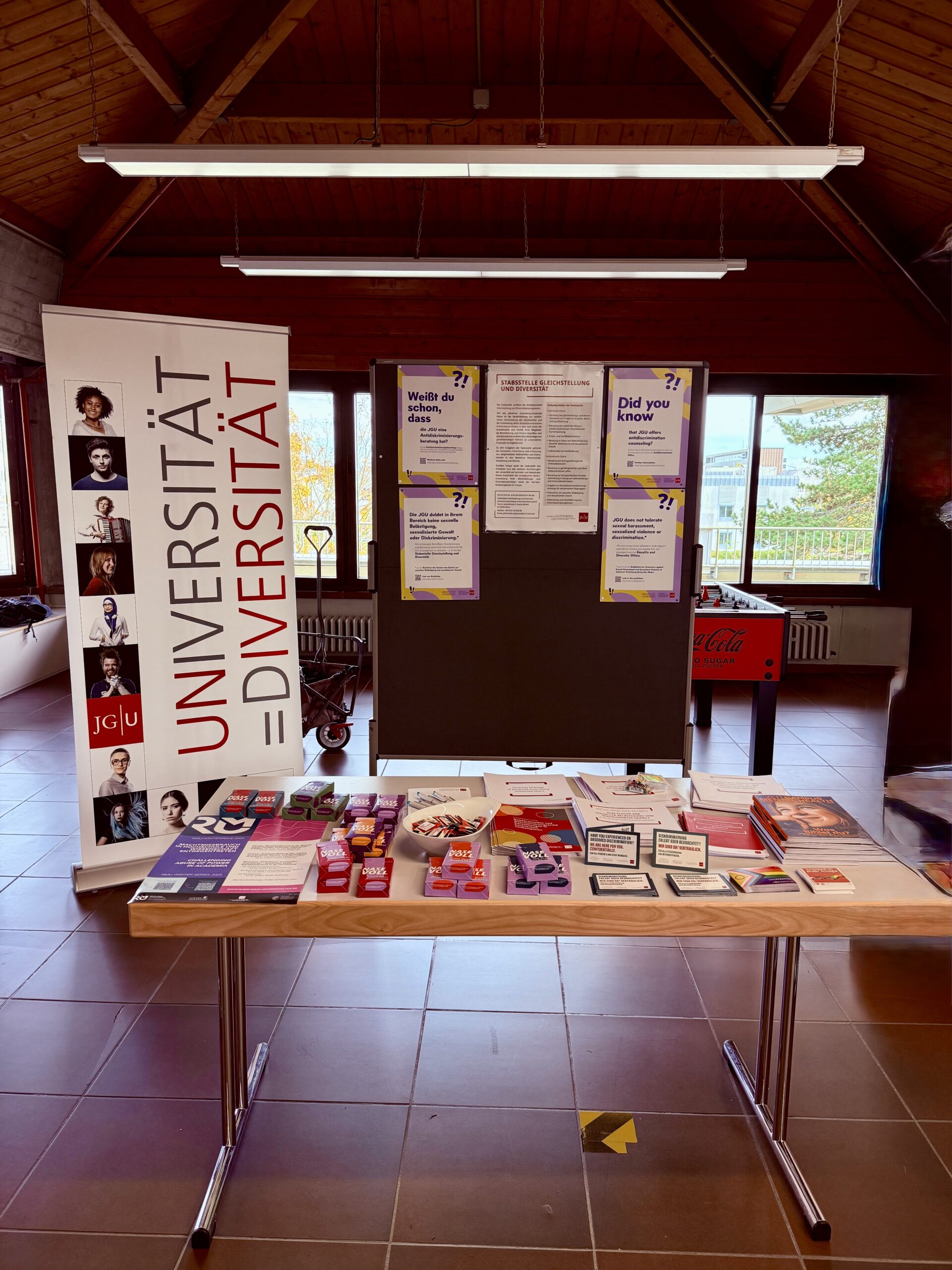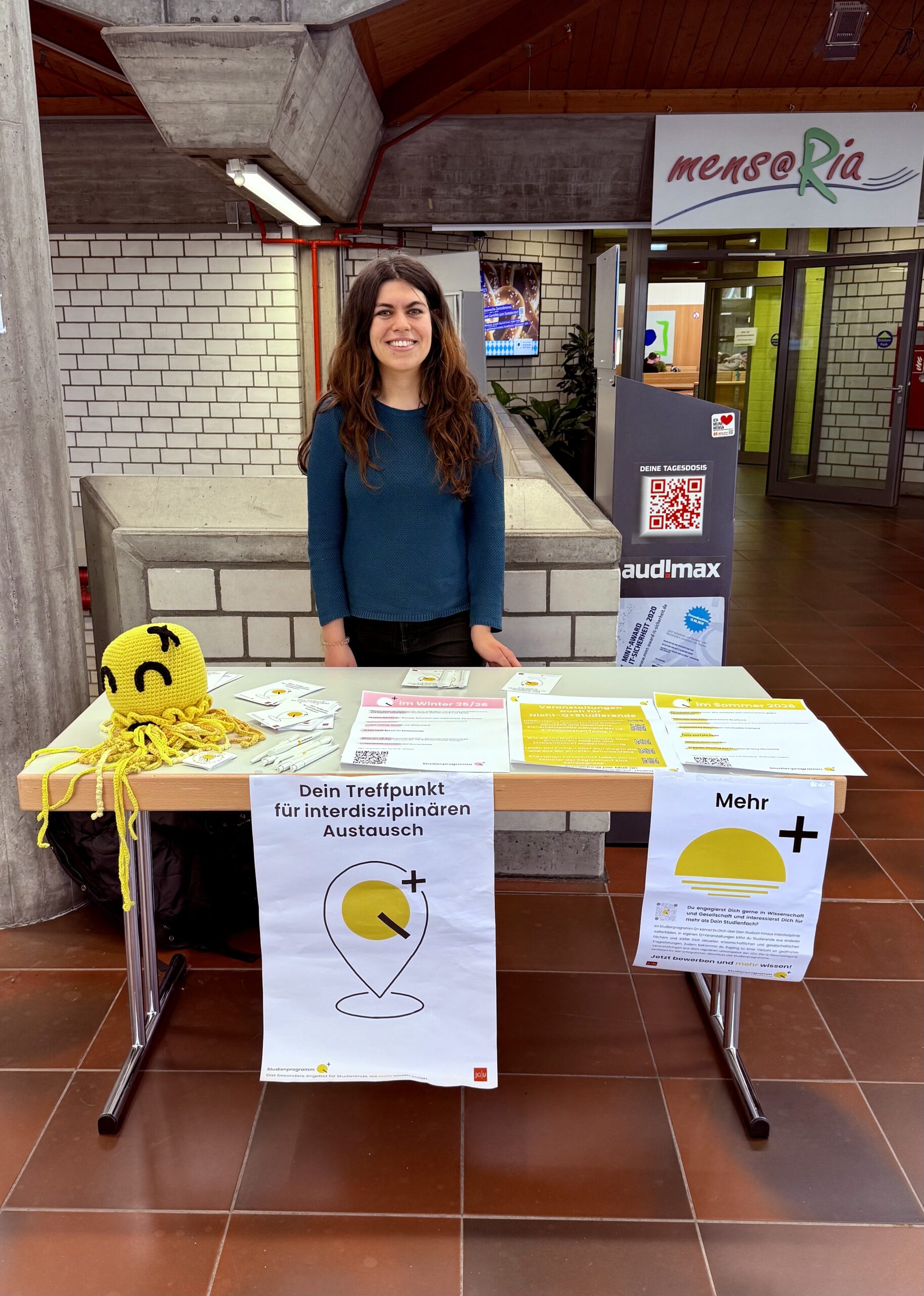 Ein herzliches Dankeschön an dieser Stelle an die gesundheitsrelevanten Akteur*innen der JGU (PBS, AHS, Stabsstelle Gleichstellung & Diversität, Familien-Servicebüro, Studienprogramm Q+) und die Techniker Krankenkasse, die mit ihren Ständen bei der Veranstaltung vertreten waren. Ein weiteres Dankeschön geht an Herrn Behnke und sein Team der Zentralmensa, die uns die Räumlichkeit zur Verfügung gestellt, uns mit Kaffee versorgt und tatkräftig bei Auf- und Abbau unterstützt haben.